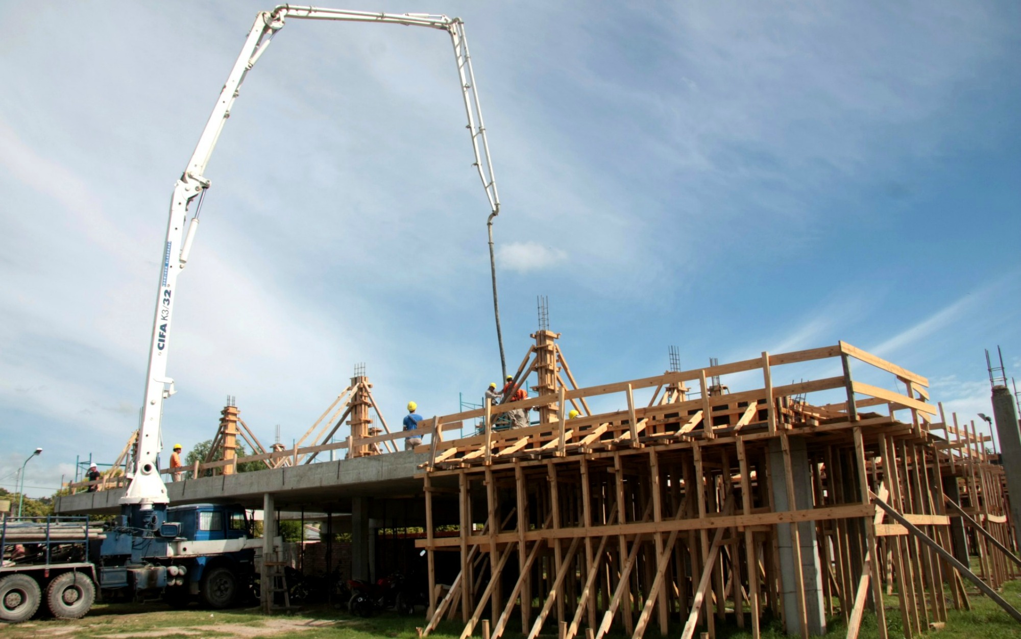Con respecto a los trabajos ejecutados en la ocasión, el ministro explicó que se utilizaron unos 25 metros cúbicos de hormigón para completar lozas de planta baja y columnas de planta alta del sector de talleres.