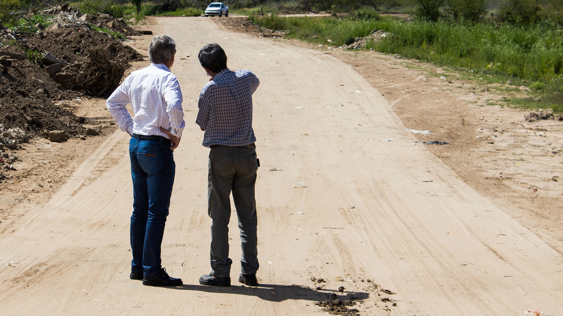 En primer lugar, ambos funcionarios inspeccionaron en Alto Verde la obra, ya finalizada, de reconstrucción del corte del terraplén de acceso al paraje La Boca. Los trabajos ejecutados consistieron en la reparación de dicho corte, provocado por la erosión del agua durante el período de Emergencia Hídrica, y en la colocación de alcantarillas debajo del mismo.
