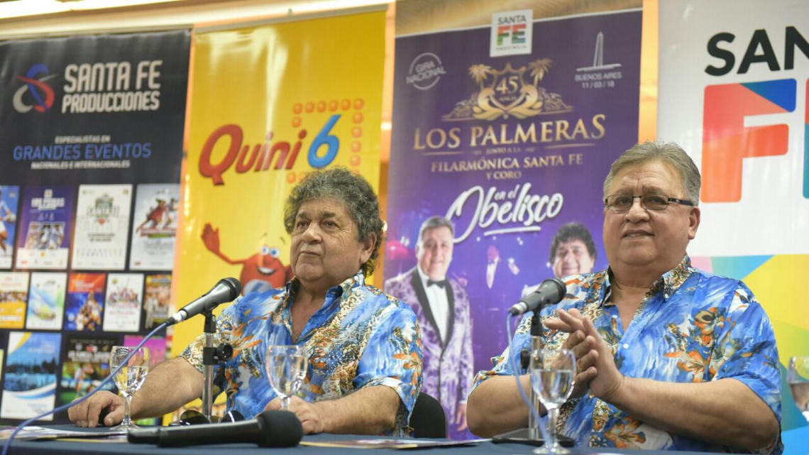 La Casa de la Provincia de Santa Fe en Buenos Aires fue el lugar elegido para la conferencia de prensa de presentación de Los Palmeras en el Obelisco, con la Filarmónica de Santa Fe y el Coro, un evento que se realizará este domingo a las 19 horas en avenida 9 de Julio y Roque Sáenz Peña (Diagonal Norte), enmarcado en la Gira Nacional que el consagrado grupo de cumbia, con 45 años de trayectoria, viene realizando junto a 60 músicos que componen la Filarmónica y el Coro.