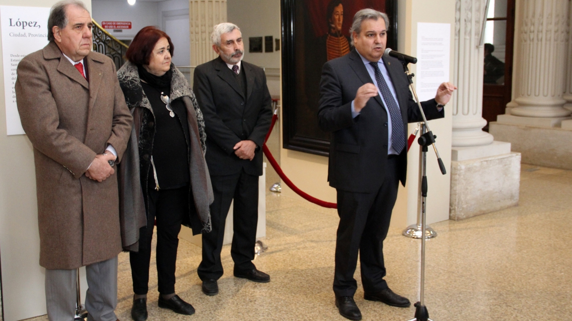 Este martes, las autoridades habilitaron en el hall de Casa de Gobierno la muestra: “López, Ciudad, Provincia, Nación” que exhibe por primera vez en la capital provincial, objetos de la colección del Museo Histórico Provincial “Dr. Julio Marc”. Entre ellos, se encuentra el bastón de mando del Brigadier, confeccionado en caña malaca y oro cincelado; el retrato de López “Gobernador y capitán general de la provincia de Santa Fe", de Carlos Enrique Pellegrini y César Hipólito Bacle (de 1830); y el retrato de Sergio Sergi (circa 1940) donado por José María Echagüe.