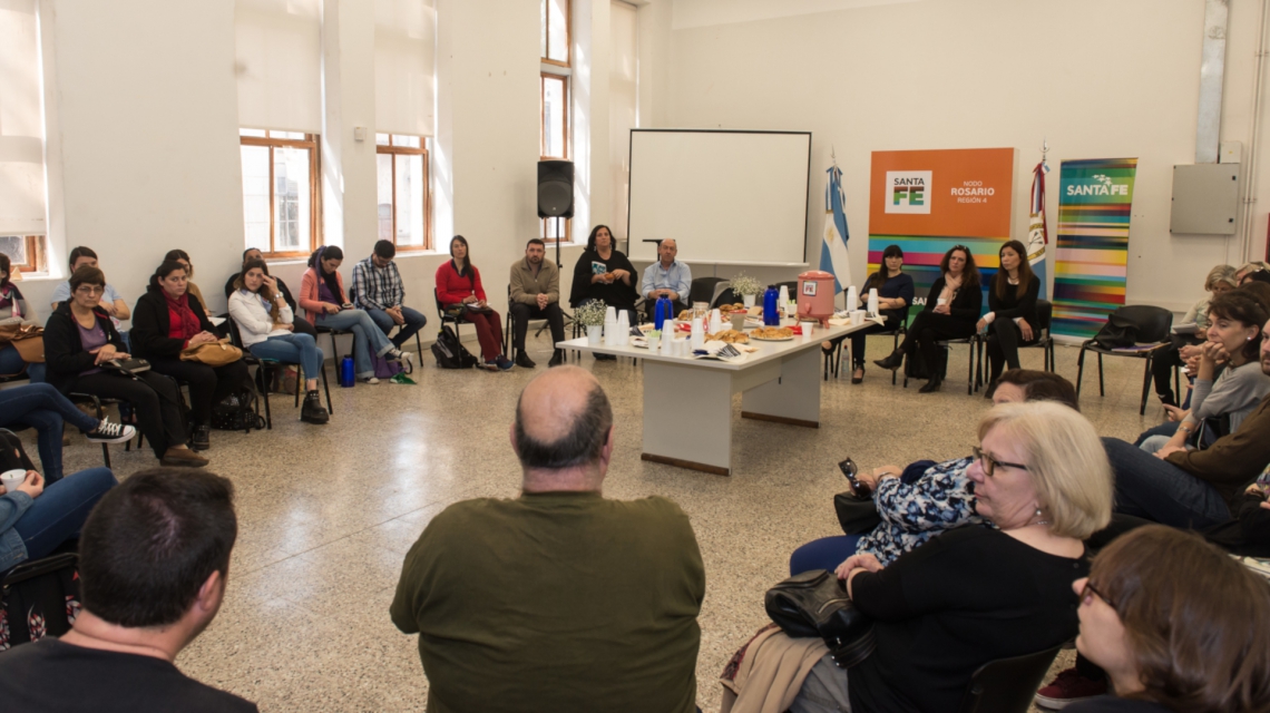 El ministro de Desarrollo Social, Jorge Alvarez, y la subsecretaria de Niñez, Adolescencia y Familia, Andrea Travaini, se reunieron este viernes con referentes de los centros de día de Rosario y la región, para intercambiar visiones sobre las realidades de las instituciones en el territorio y articular estrategias de acción conjuntas en el marco de la emergencia social.