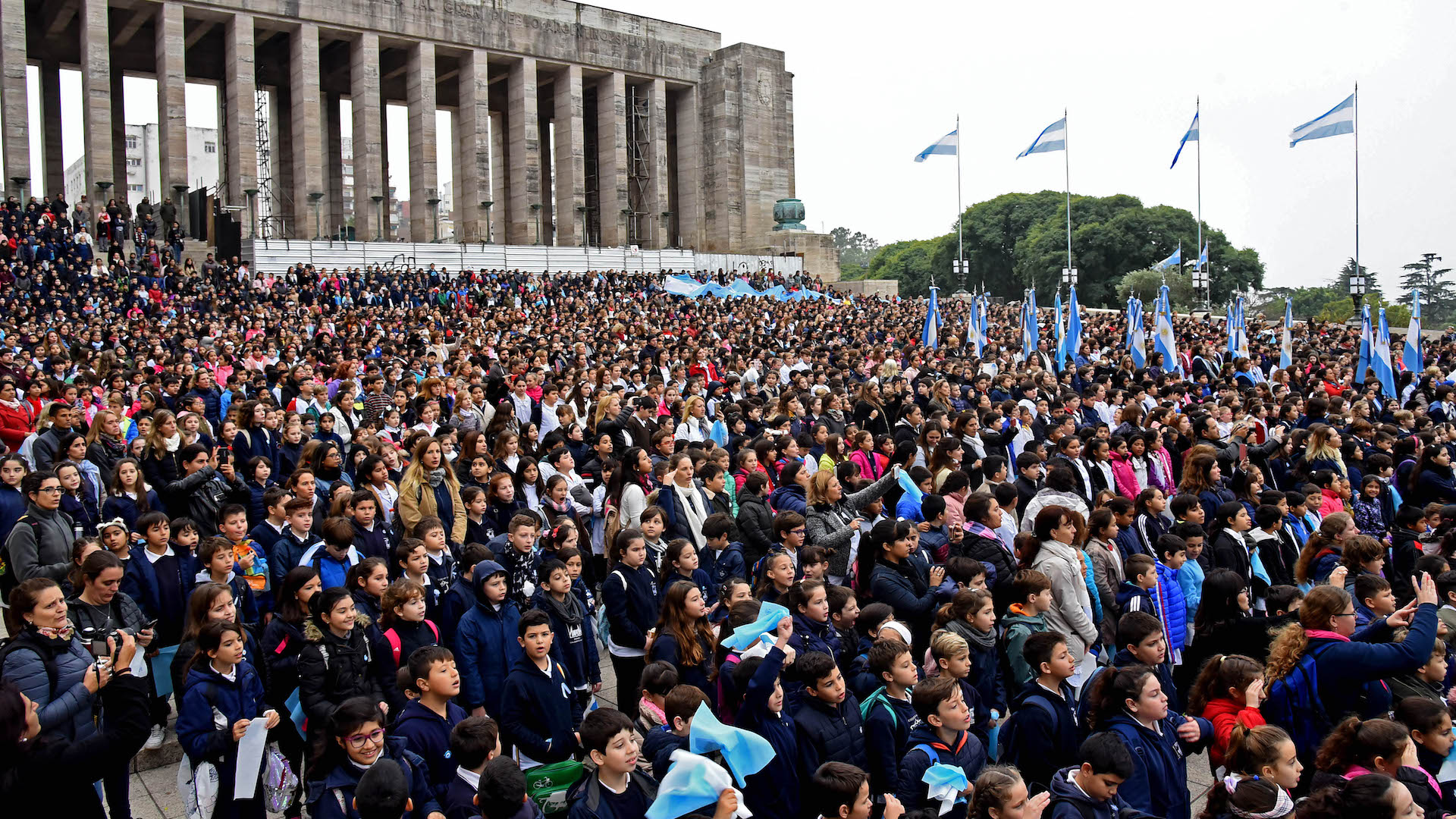 Durante el acto se presentó un video colaborativo denominado “Bandera del Amor”, que este año los estudiantes de 300 escuelas elaboraron con la canción “Saludo a la bandera".