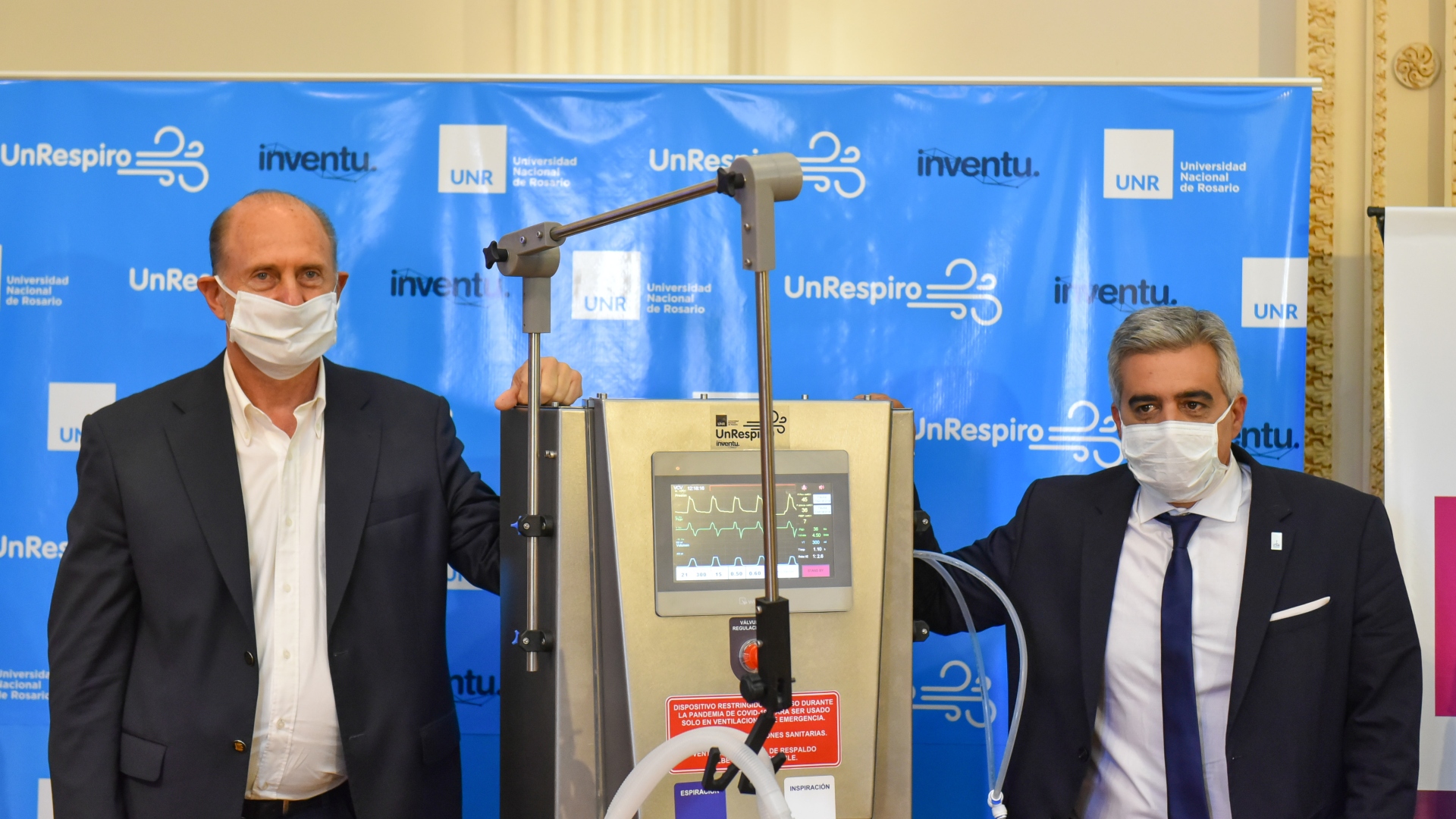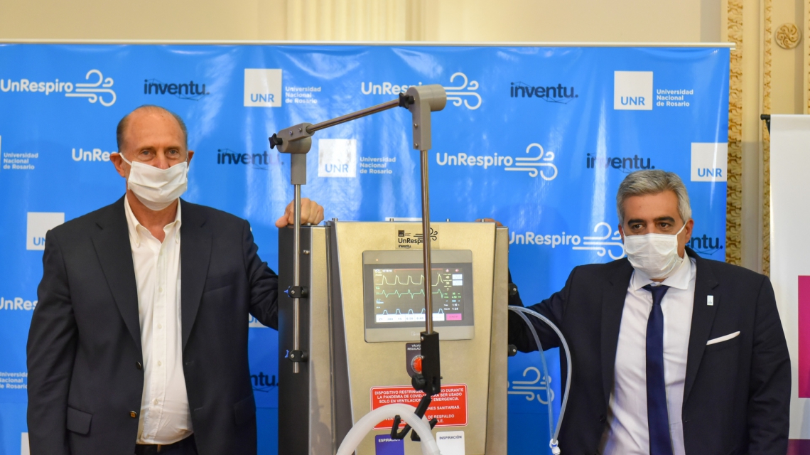 El prototipo de ventilador de transición para la atención de la emergencia por COVID-19 fue desarrollado conjuntamente por la empresa rosarina Inventu y la UNR. Desde la compañía local especificaron que el modelo “mueve el aire dentro y fuera de los pulmones de manera controlada, y monitorea presiones y volúmenes. También controla la mezcla de aire/oxígeno, y posee pantalla táctil para monitorear y controlar los parámetros principales: frecuencia, presión, volumen, flujo, unidades de medición y modo de control”.