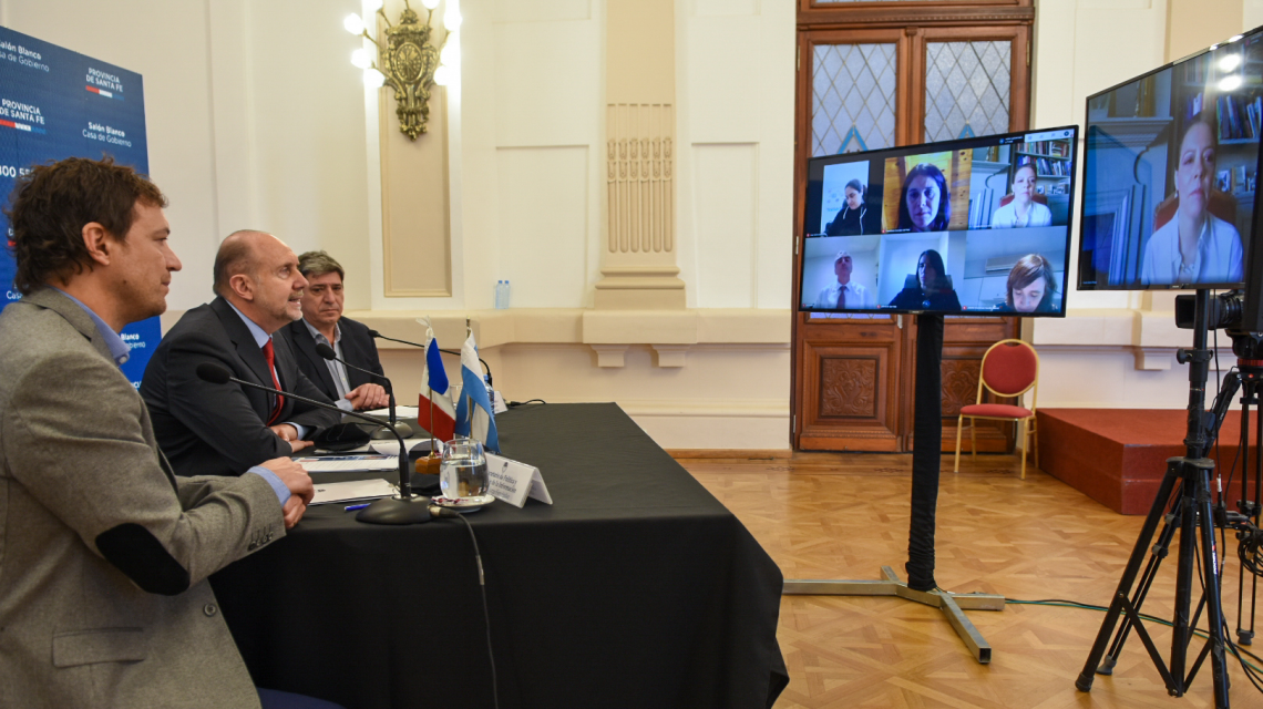 El gobernador Omar Perotti mantuvo una reunión, por videoconferencia, con la embajadora de Francia en Argentina, Claudia Scherer-Effosse, para avanzar en proyectos de cooperación "que tienen que ver con el saneamiento, la seguridad y la implementación de la perspectiva de género en la instancia presupuestaria, temas expuestos muy fuertemente en la pandemia", precisó el gobernador.