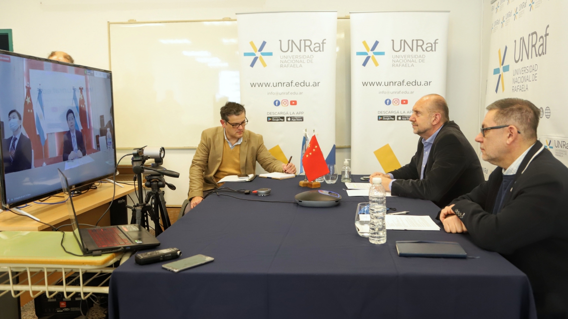 Participaron del encuentro el ministro de la Producción, Ciencia y Tecnología, Daniel Costamagna; el secretario de Comercio Exterior de la provincia, Germán Burcher; el rector de la Universidad Nacional de Rafaela (Unraf), Rubén Ascúa; la responsable de Asuntos con la República Popular de China del Gobierno de Santa Fe, Emiliana Hidalgo; y por China, el Consejero Político, Wang Xialin; y la Consejera Económica, Xia Diya.