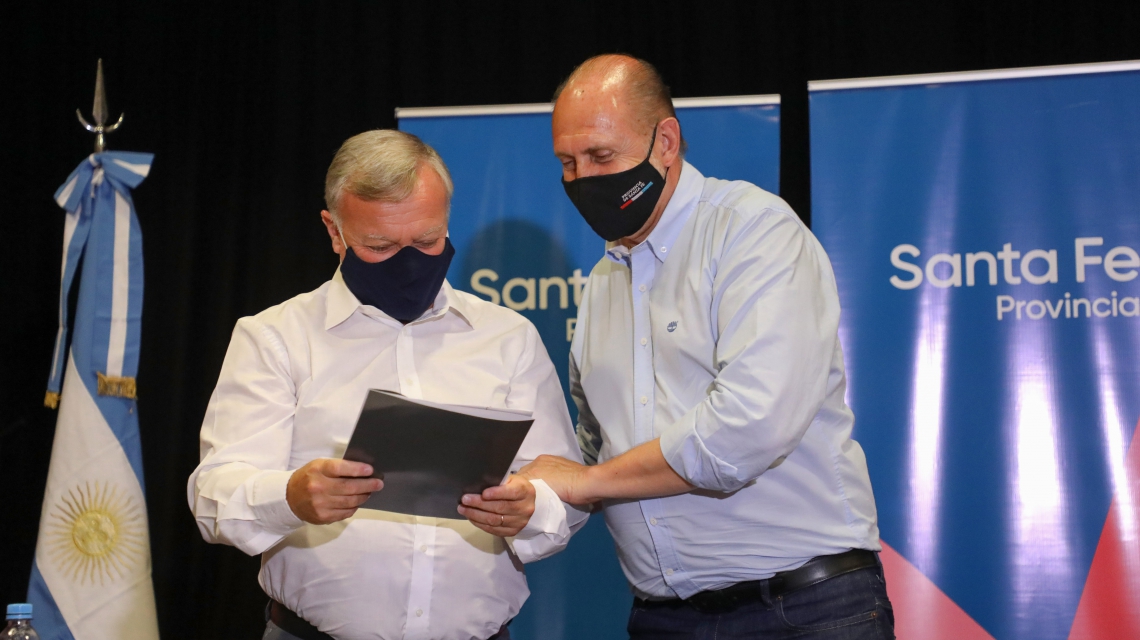 En primer lugar, Omar Perotti suscribió convenios de adhesión al Plan Incluir con las comunas de Centeno, Bernardo de Irigoyen y Arocena. Mediante el acuerdo, Centeno recibió $10.329.121 para la ejecución de 22 cuadras de cordón cuneta y badén; Bernardo de Irigoyen $5.460.928 para la construcción de cordón cuneta y bocacalles de hormigón en la avenida Rosario; y Arocena $6.434.159 para el proyecto del Polideportivo Comunitario.