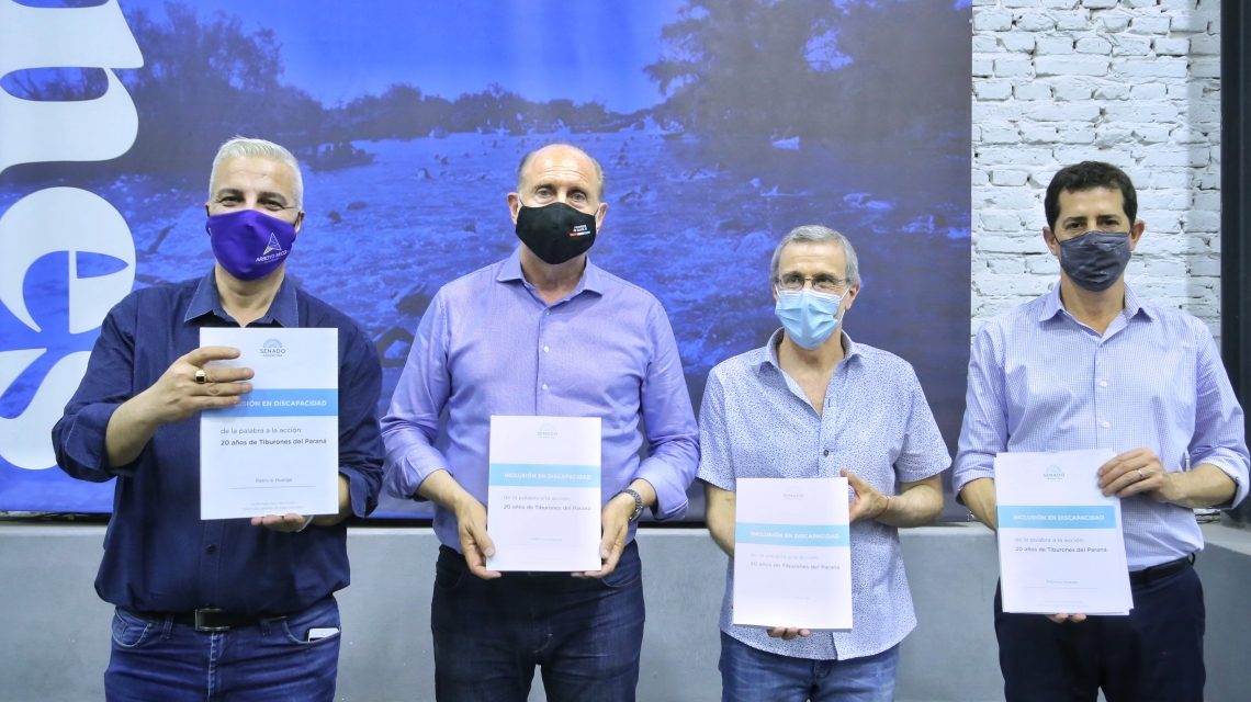 Y finalizó: “Qué tiene el libro? Primero, definiciones, porque de alguna manera tenemos que partir de definiciones para decir ‘esto es lo que pensamos, esto es lo que decimos y esto es lo que hemos hecho’. De modo que todo vaya en una sola dirección. Tiburones del Paraná es un proyecto colectivo de inclusión social, entre personas con y sin discapacidad. Es un gran acto de amor, pero acto de amor entre mucha gente”.