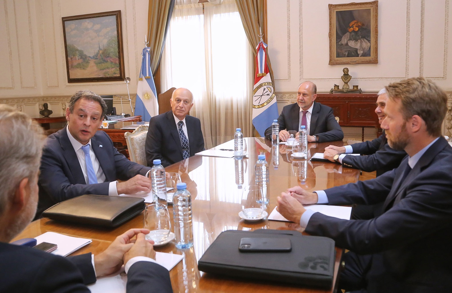 Del encuentro, llevado a cabo en el despacho del gobernador, participaron también el secretario de Justicia de la provincia, Gabriel Somaglia, y el diputado nacional Roberto Mirabella.