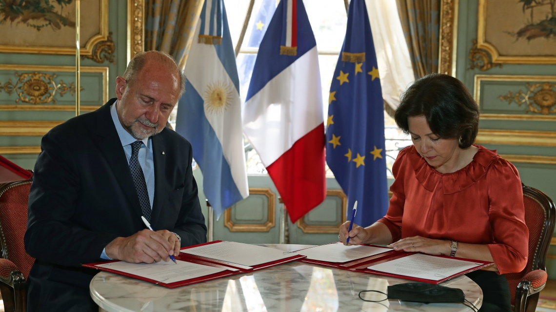 El gobernador Omar Perotti firmó este miércoles un Convenio Marco de Cooperación con la embajadora de Francia en Argentina, Claudia Scherer-Effosse, para fomentar la enseñanza del idioma francés en todos los niveles y modalidades educativas de la provincia de Santa Fe, como así también al acceso a becas de perfeccionamiento y capacitaciones.