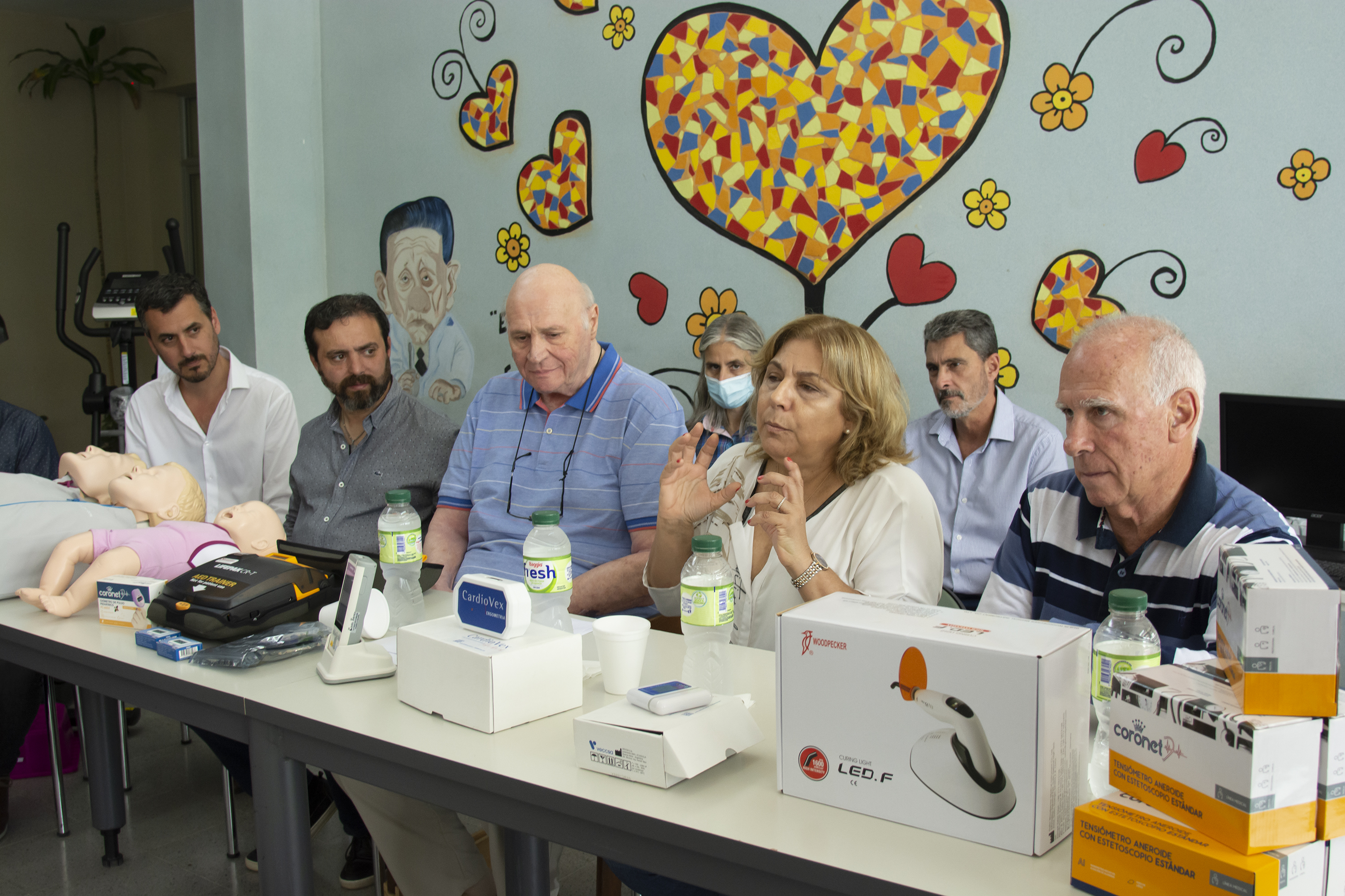 Elementos para kinesiología, tecnológicos (computadoras e impresoras) electrocardiógrafos DEA, entrenamiento para gabinete, holter, bicicleta y sistema de ergometría para cardiología, balanzas, carros de curaciones, oxímetros, tensiómetros, lámpara y sillón odontológico, tubo de oxígeno, camilla y silla de ruedas.