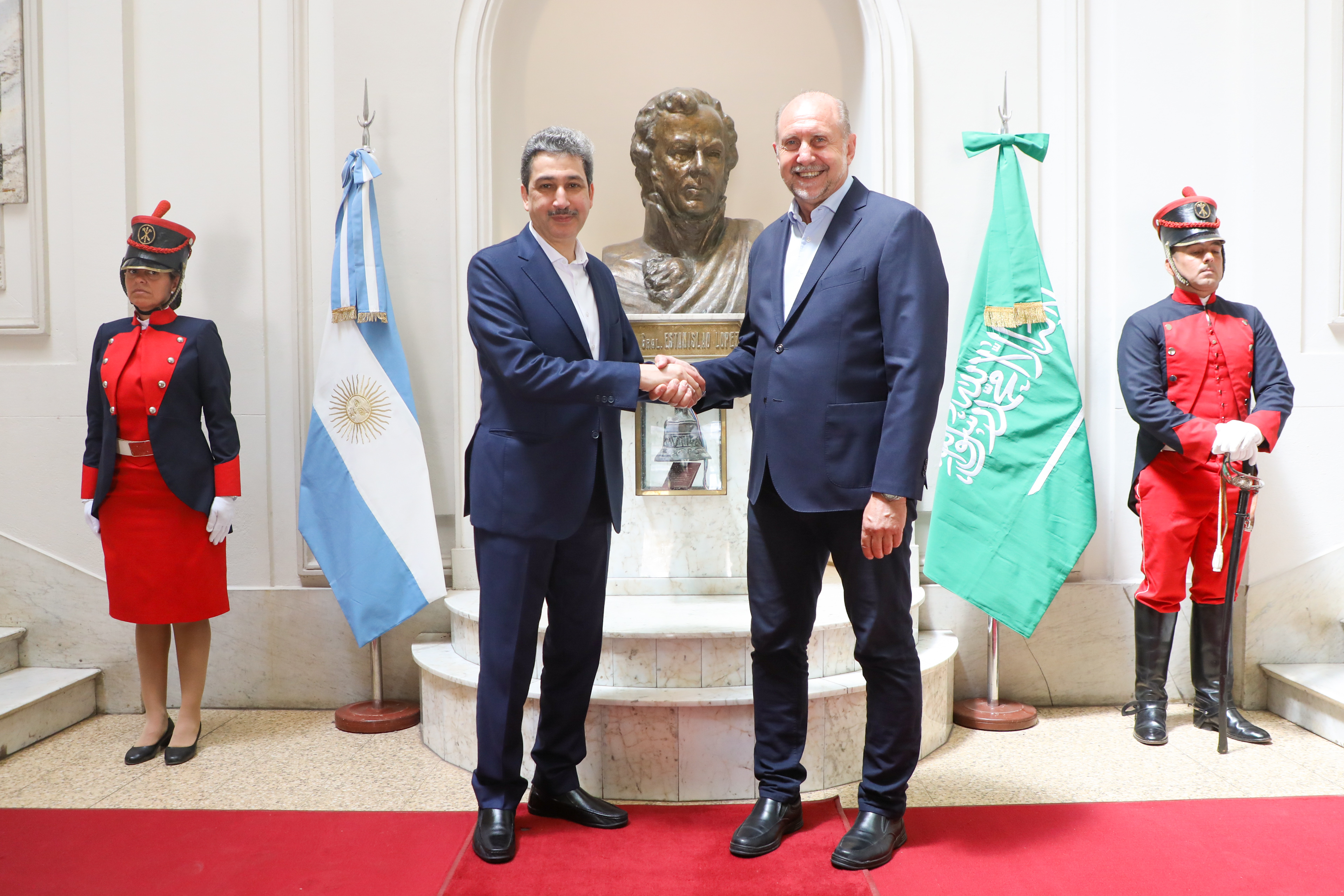 Durante el encuentro realizado en el Salón Blanco de Casa de Gobierno en la ciudad de Santa Fe, Omar Perotti manifestó su “gran satisfacción que el embajador del reino de Arabia Saudita nos esté visitando, acompañando al Fondo Saudí para el Desarrollo”.