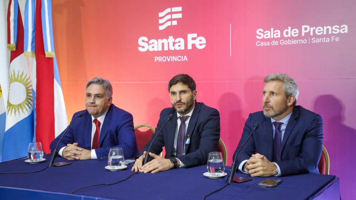 Durante la conferencia de prensa que brindó junto a sus pares de Entre Ríos, Rogelio Frigerio, y de Córdoba, Martín Llaryora, el gobernador santafesino indicó que “en este caso nos unimos para reclamar esta deuda histórica y permanente que tiene Nación con nosotros. Hoy Entre Ríos, Córdoba y Santa Fe se paran con mucha firmeza, respeto y responsabilidad, en la defensa de nuestras cajas de jubilaciones, y fundamentalmente de nuestros recursos”.