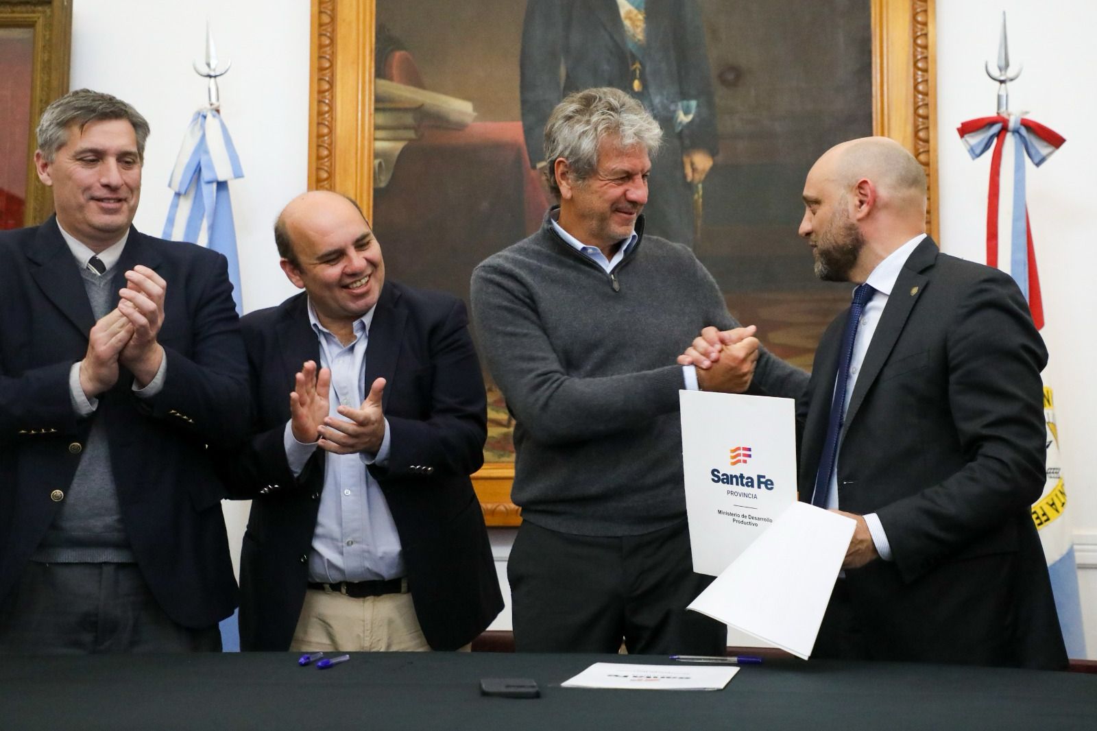 A assinatura do convênio foi realizada no Salão Branco da Prefeitura de Esperanza e do ato participaram os ministros do Desenvolvimento Produtivo, Gustavo Puccini; e da Fazenda, Pablo Olivares; o secretário de Planejamento e Gestão para o Desenvolvimento Produtivo e da Bioeconomia da União, Juan Alberto Pazo; e o prefeito da cidade de Esperanza, Rodrigo Müller, entre outros.