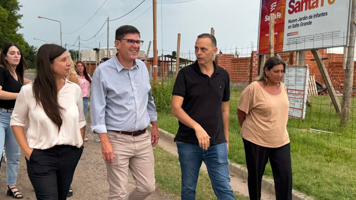 En Salto Grande "recorrimos las obras del nuevo edificio del Jardín N° 281, que anunciamos en junio de 2024, y que presenta un avance del 10%. Prevé 3 salas de nivel inicial con sus sanitarios, dirección, secretaría, y espacios de portería", detalló el ministro. Luego, las autoridades visitaron las escuelas Primaria N° 241 y la EESO N° 307.
