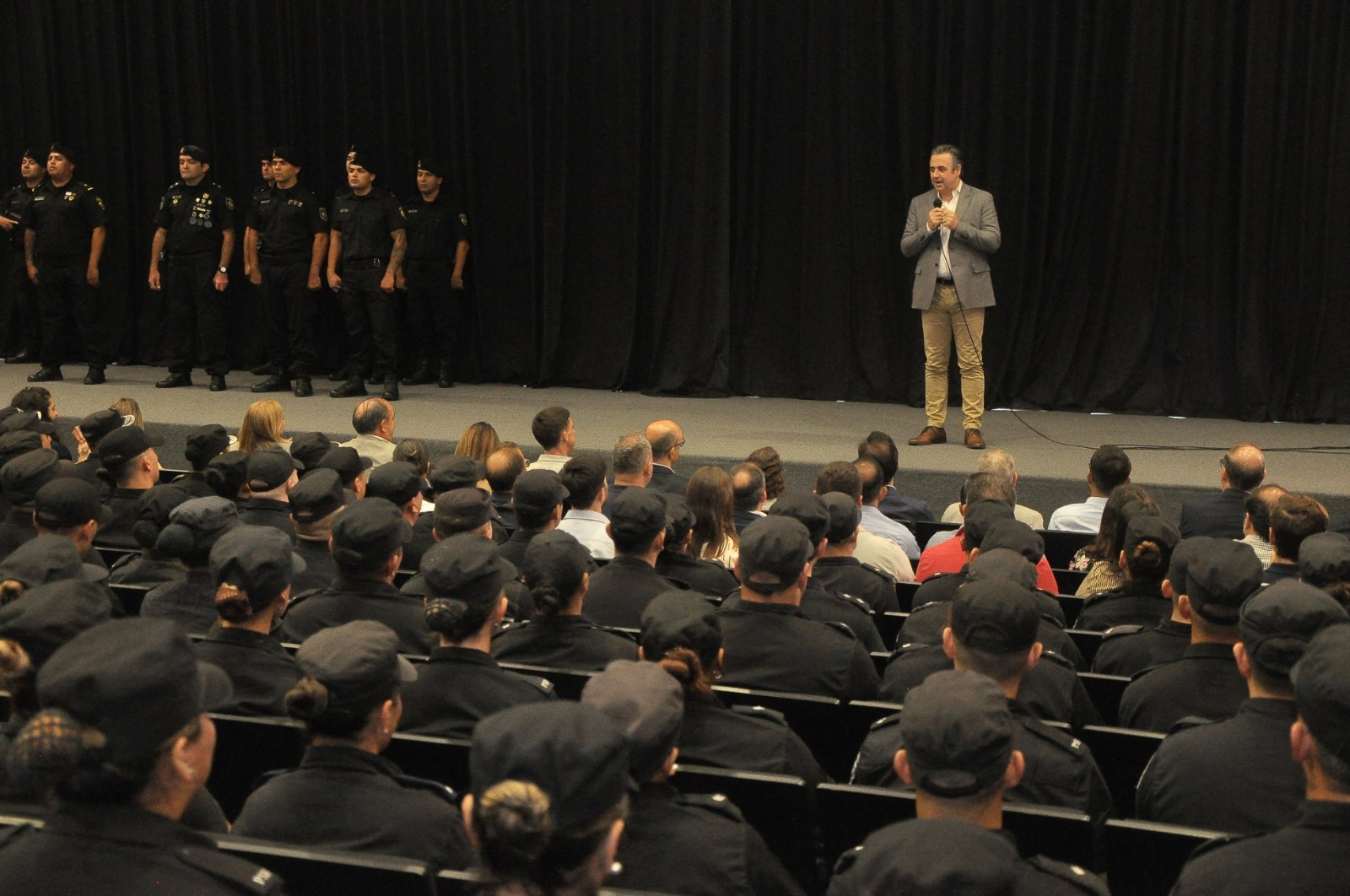 Mientras, el ministro de Justicia y Seguridad, explicó que “hoy damos un paso más en llevar adelante una política de seguridad en conjunto con nuestra Policía, premiando a los mejores, a quienes se desempeñaron de manera excelente, cumpliendo con todo lo que se les pidió en los lugares y momentos más difíciles, y que hoy se suman a nuestras filas en la capital provincial y en todo el departamento”, y remarcó al respecto que “vienen acá por buenos, porque trabajaron, porque cumplieron, porque no faltaron, porque detuvieron gente, porque pidieron documentos y porque hicieron lo que la gente necesita que hagan”.
