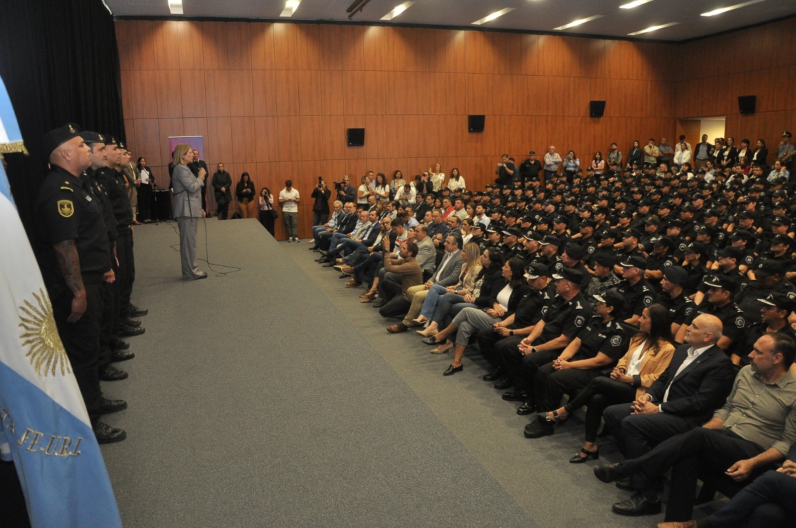 Durante el acto, realizado en el Museo de la Constitución, Scaglia afirmó que “hoy, después de un año de arduo trabajo, logrado uno de los objetivos, que es el respeto, y es la necesidad de la gente de la Policía de Santa Fe: la gente los quiere ahí, en la calle, firmes, trabajando, escuchando, y sobre todo haciendo una gran tarea que es la prevención”.