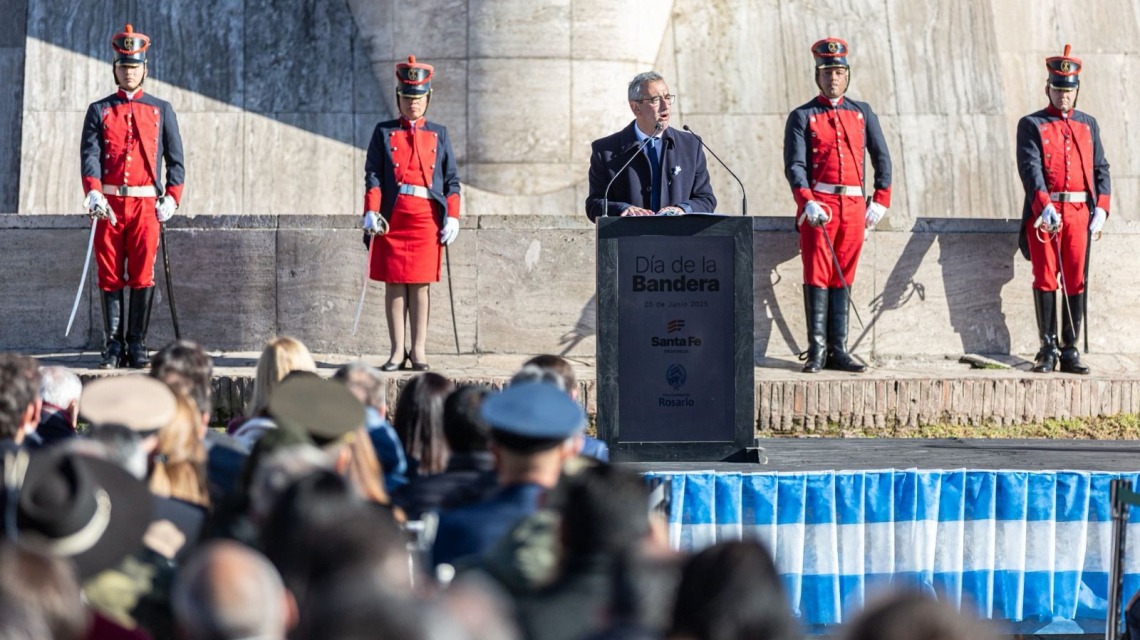 El gobernador de la Provincia de Santa Fe, Maximiliano Pullaro, encabezó este viernes el acto central por el Día de la Bandera, en conmemoración del 205º aniversario del paso a la inmortalidad del general Manuel Belgrano. La ceremonia tuvo lugar a orillas del río Paraná, en el Monumento Nacional a la Bandera, y contó con la participación del intendente de Rosario, Pablo Javkin; la vicepresidenta de la Nación, Victoria Villarruel; y autoridades provinciales, municipales, fuerzas de seguridad, estudiantes, vecinos y vecinas.