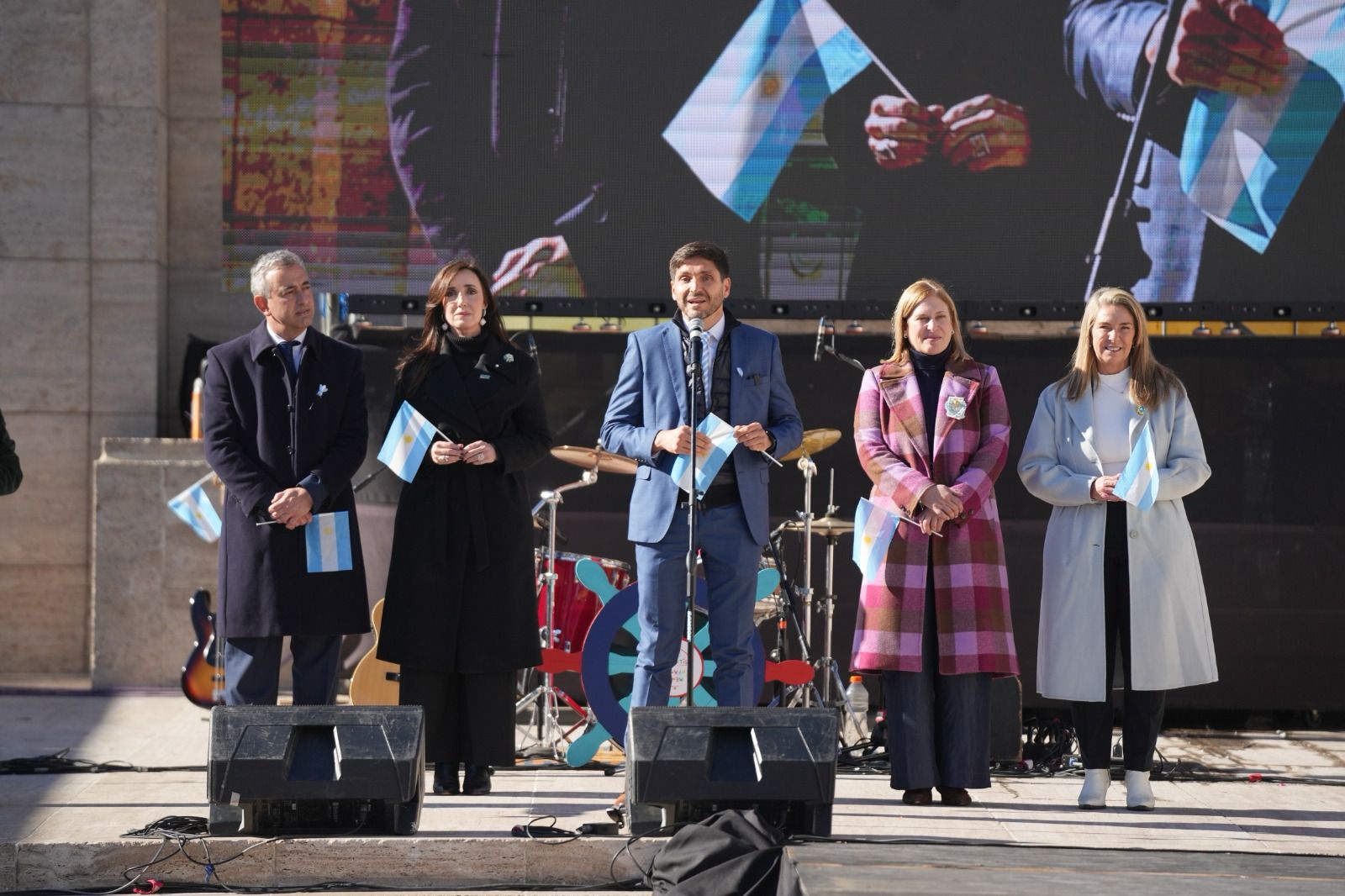 En el acto también estuvieron presentes la presidenta del Concejo Municipal, María Eugenia Schmuck; el ministro de Educación de la Provincia, José Goity y demás ministros del gabinete provincial, legisladores nacionales, provinciales; representantes de la comunidad educativa y escuelas participantes; y los ex soldados veteranos combatientes en Malvinas, cuya presencia es ya una tradición en esta fecha. Luego del acto, la actividad continuó con música en vivo del grupo rosarino Menú Infantil.