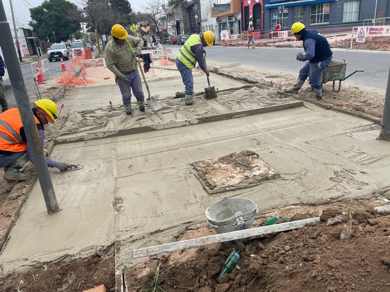 • Avenida Aristóbulo del Valle también está en fase inicial: se ejecutan tareas de aserrado y remoción del pavimento, demolición parcial de cordones y excavaciones para instalaciones eléctricas y desagües. Se construyen nuevos cordones de hormigón armado, armaduras y sistemas de drenaje pluvial para evitar anegamientos.