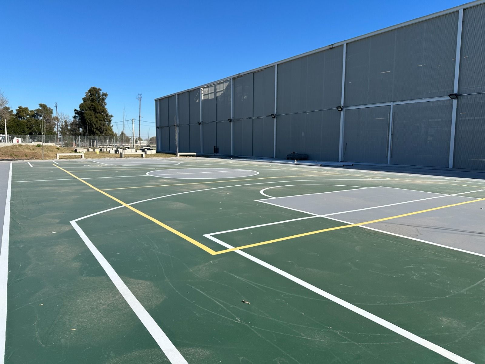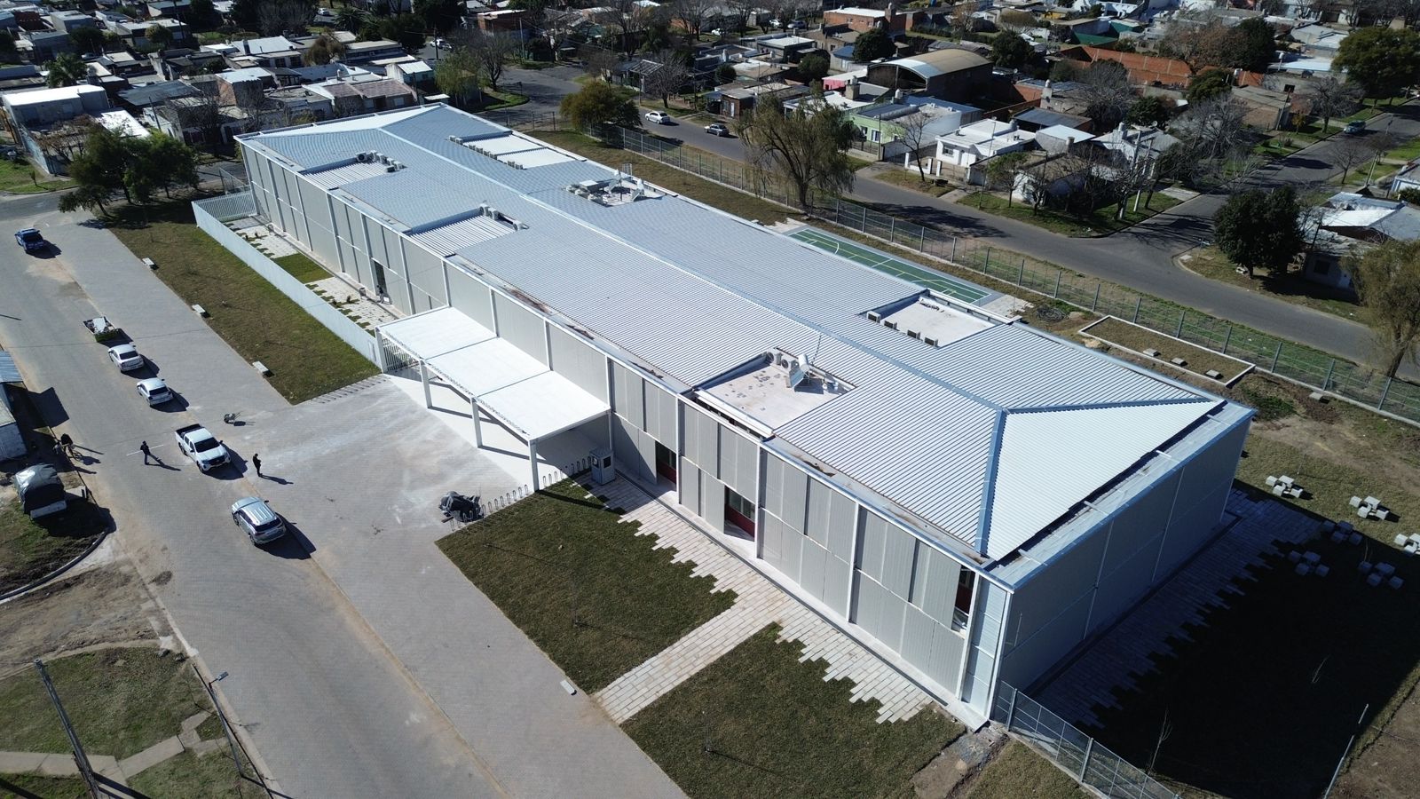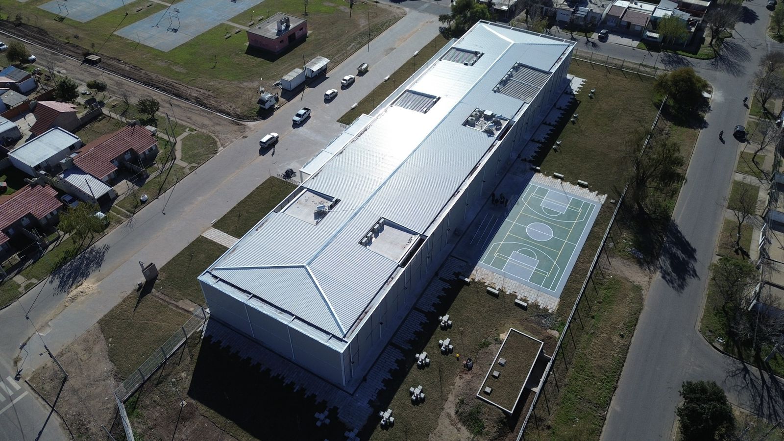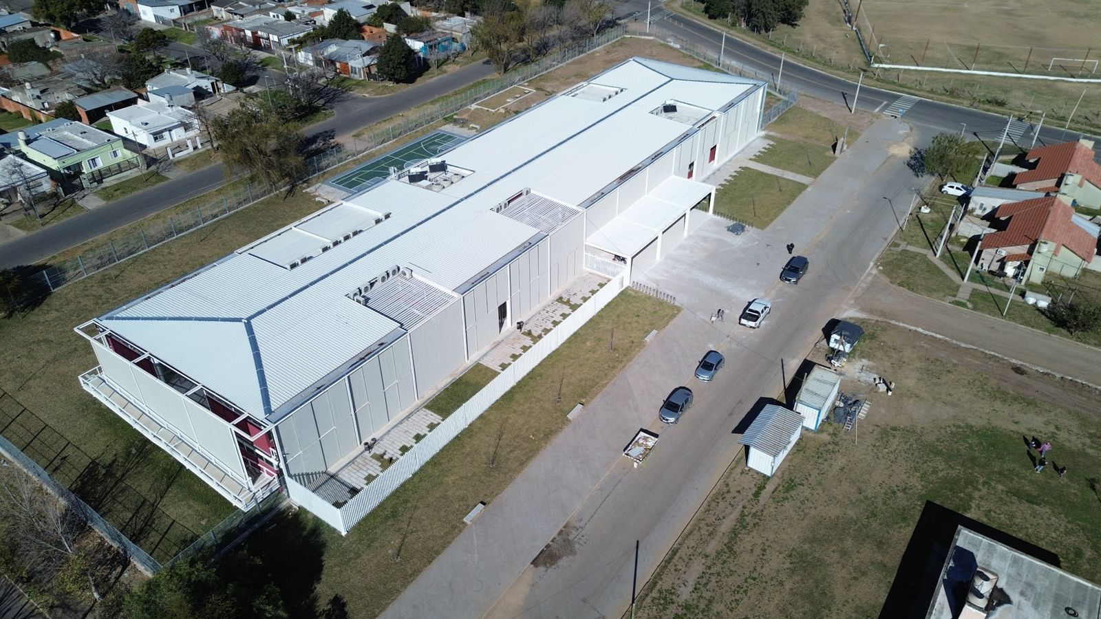 En el exterior se suman áreas de esparcimiento con mobiliario adecuado, una cancha multideportes en correspondencia con el hall de ingreso, y patio principal semicubierto.
