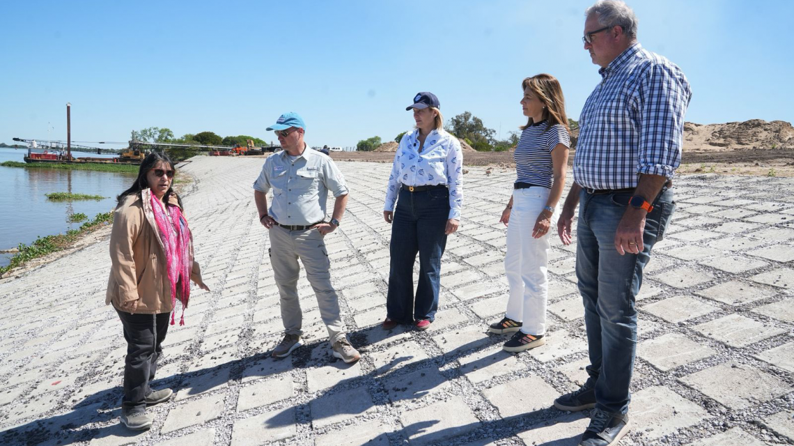 Por sua vez, Enrico explicou que "a obra visa evitar que os rios Colastiné e Ubajay provoquem erosão e desgaste nesta área, colocando em risco toda a população que vive aqui. Por isso, o governo de Santa Fe construiu uma estrutura de proteção elevando a terra. Esta foi coberta com uma manta geotêxtil por baixo e blocos de cimento por cima para evitar a erosão hídrica."