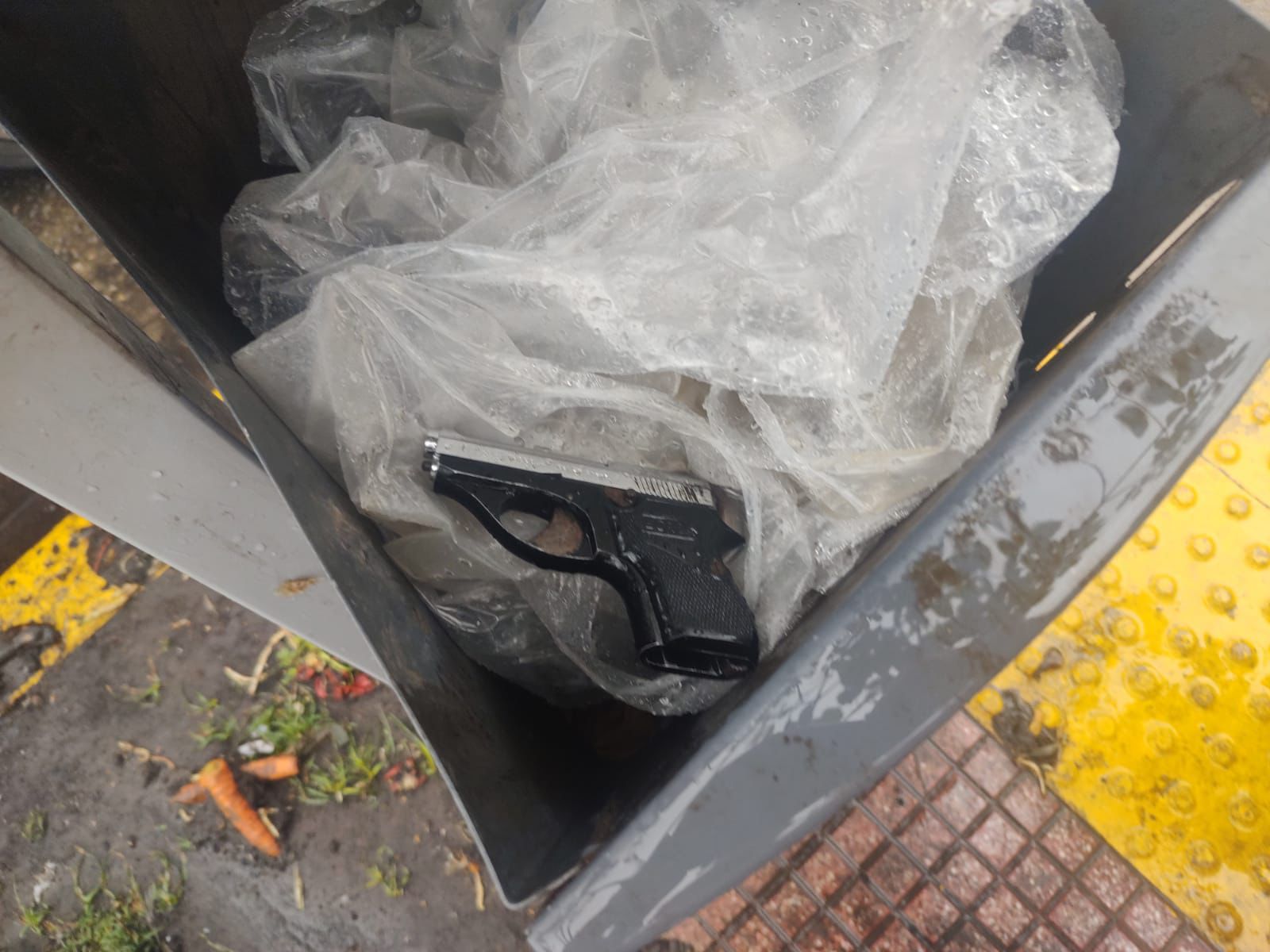 Asimismo en un contenedor de basura ubicado frente al comercio asaltado, la Policía logró el secuestro del arma utilizada por los autores, tratándose de una pistola calibre 22 marca Bersa sin cargador.