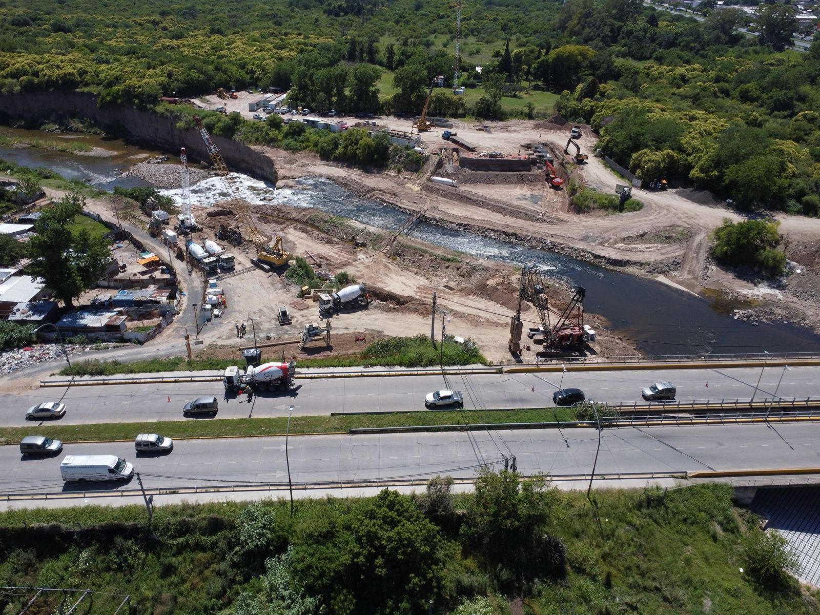 Para frenar este proceso, la Provincia construye un sistema de estabilización compuesto por dos pantallas subterráneas que atraviesan el cauce del arroyo en un ancho de 114 metros. Cada uno de estos elementos implica la colocación de estructuras de hasta 25 toneladas de hierro a 33 metros de profundidad y el uso de 30 camiones de hormigón.
