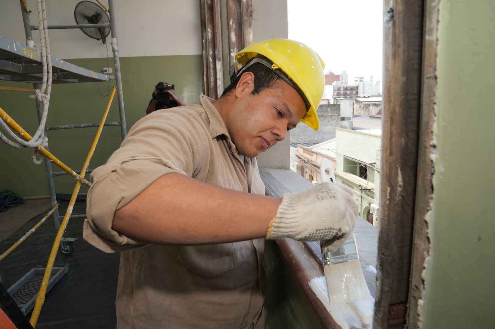 En el sector de los tanques de agua se avanza con la recomposición del sistema y la construcción de un área técnica específica, mientras que en el interior del establecimiento se desarrollan trabajos de recuperación y pintura de aulas, espacios de circulación y núcleos de escaleras. También se ejecutan tareas de adecuación eléctrica en corredores, recambio de aberturas y la incorporación de nuevos parasoles en el frente este del edificio.