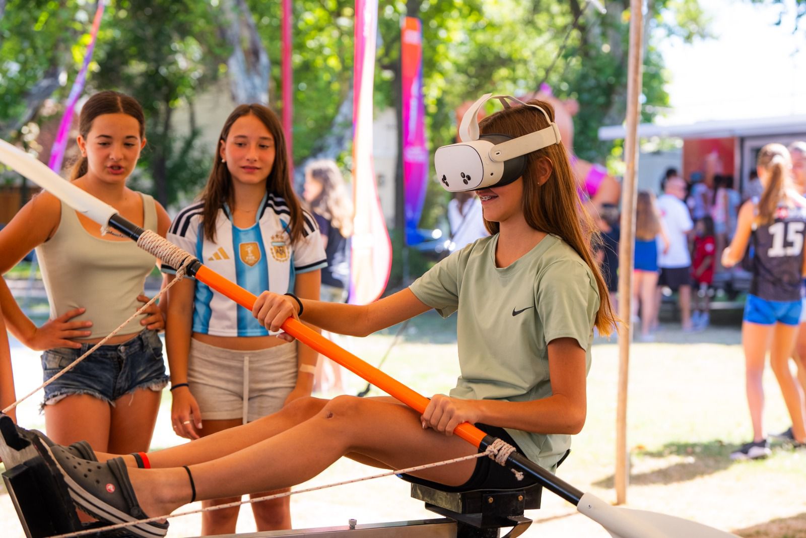 La propuesta ofrece estaciones recreativas con metegol, tenis de mesa, minigolf y simuladores virtuales de remo, ciclismo, fútbol, automovilismo, penales y tiro con arco, entre otras experiencias interactivas pensadas para todas las edades.
