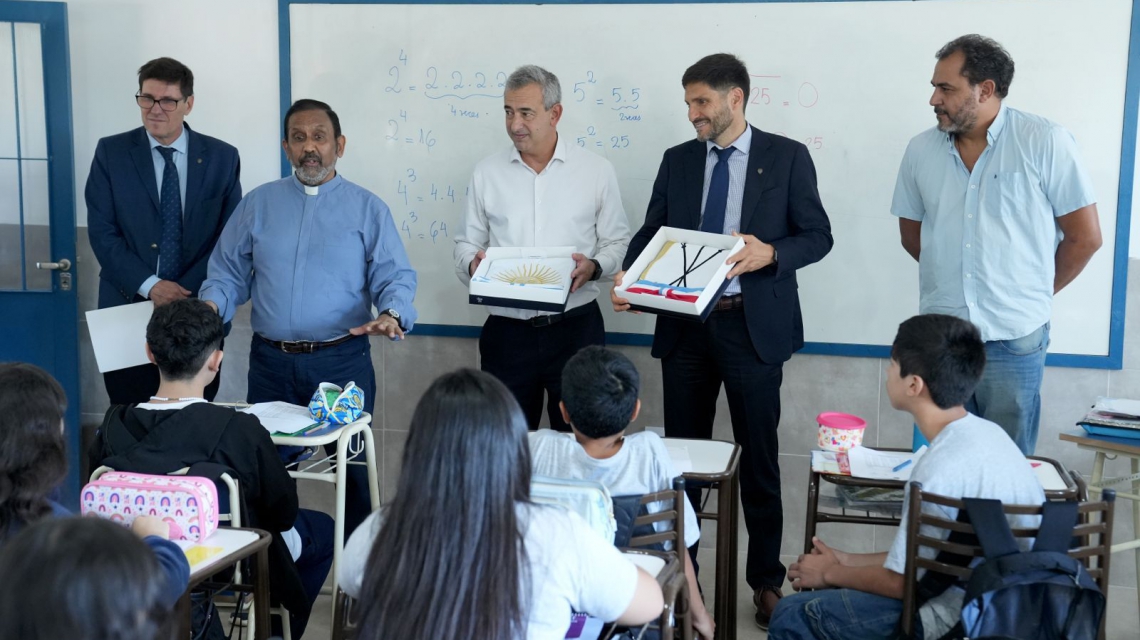 La actividad se realizó junto al ministro de Educación, José Goity; el intendente de Rosario, Pablo Javkin; y el padre Ignacio Peries, referente de la institución. Durante la visita también anticiparon nuevas obras de urbanización para ese sector del noroeste de la ciudad.