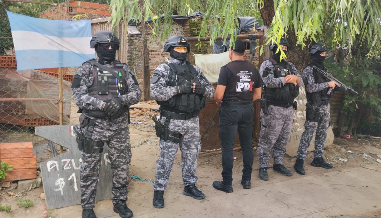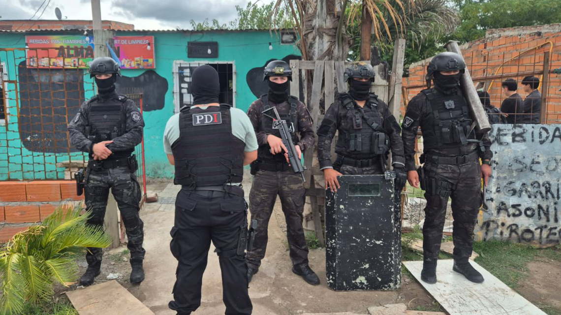 Los procedimientos fueron llevados adelante por personal de la Policía de Investigaciones y de grupos tácticos de la Policía de Santa Fe. El perro detector “Kenzo”, de la Sección Canes de la PDI, resultó clave para el desarrollo de las medidas.