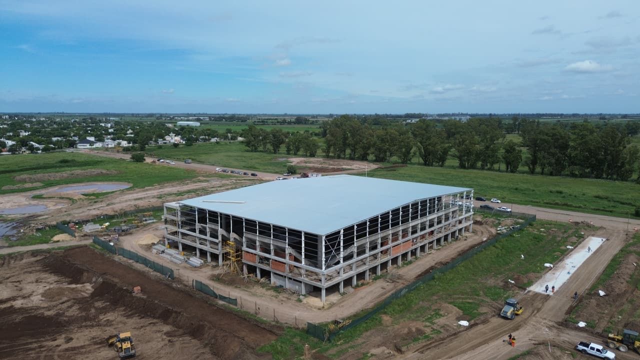 En el complejo, con un avance del 40 %, se continúa con los trabajos de fundaciones, columnas, vigas y losas. Además, se realizó el cerramiento lateral del tercer piso. El monto destinado a la construcción de esta Villa Suramericana es de 12.000 millones.