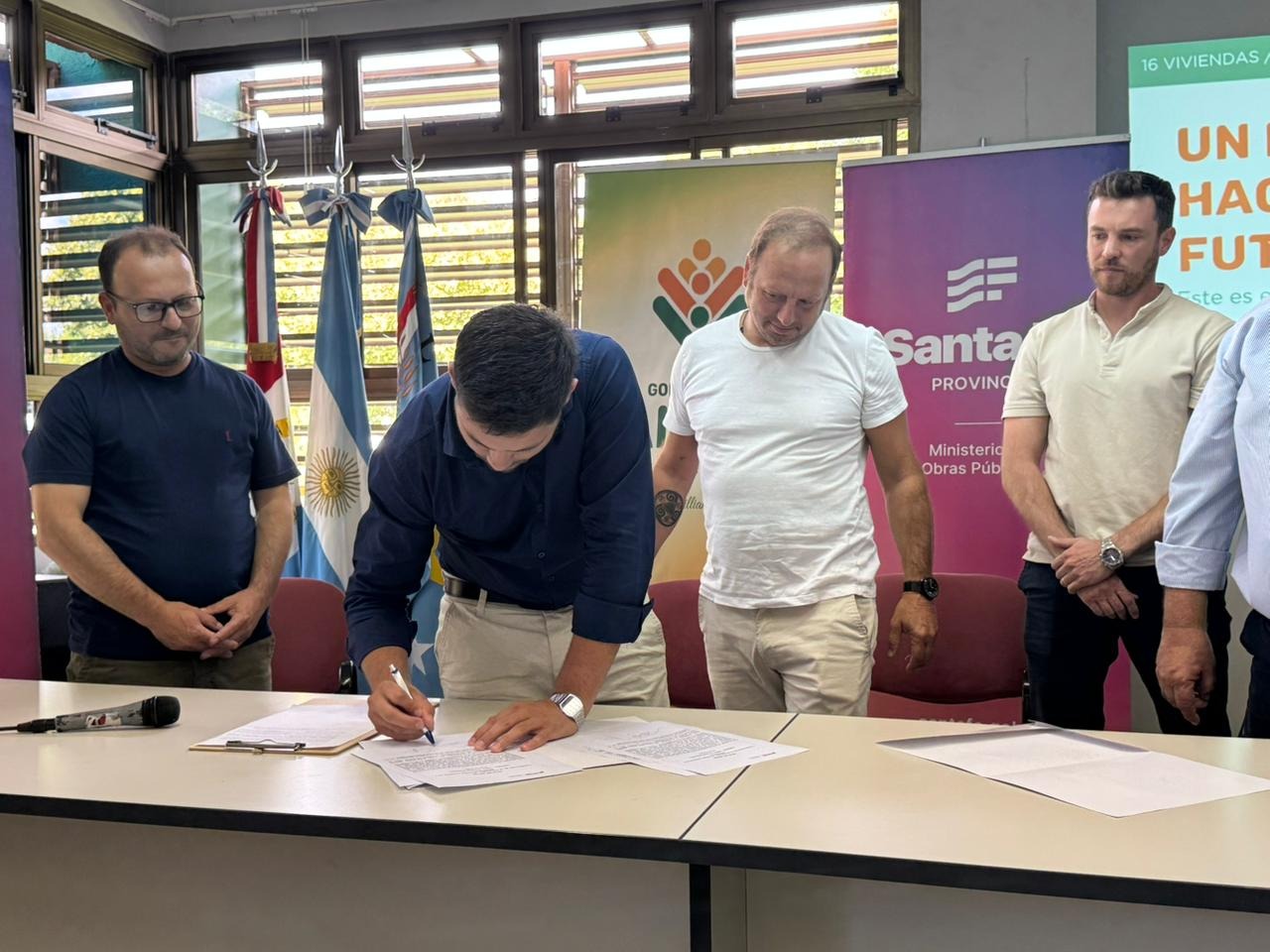 Ante la paralización total de la Nación en la construcción de más de 800 viviendas en todo el territorio santafesino, el Gobierno Provincial continúa recuperándolas del abandono y, en Lanteri (departamento General Obligado), firmó el acta de inicio de los trabajos para la terminación de otras 16 unidades habitacionales.