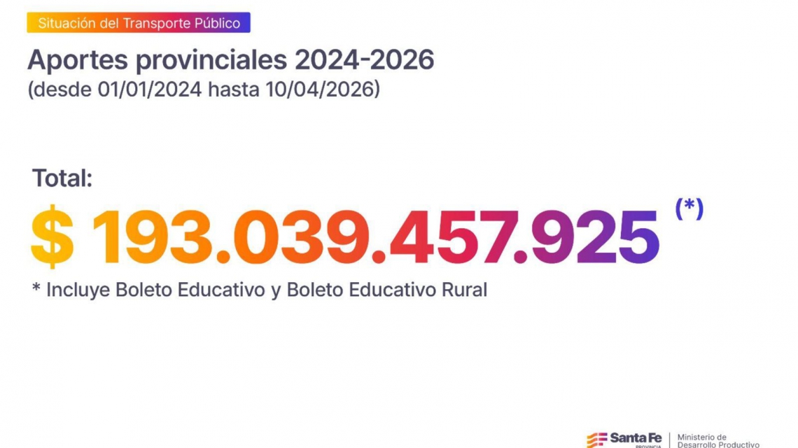 Sin embargo, ante el atraso de los pagos -que además son desiguales-, Puccini valoró que “Santa Fe responde con gestión”, y dijo que para que el sistema de transporte siga funcionando “la Provincia ya destinó más de $ 193.000 millones, sosteniendo de manera prioritaria el Boleto Educativo y Rural”, y afirmó que “la Nación nos da la espalda, pero la Provincia invierte para que los santafesinos puedan seguir yendo a trabajar y a estudiar”.
